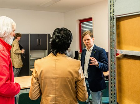 Eher spontan schloss sich ein Überblick über die Struktur und das Angebot der Media:Brücke in der Zweibrücker Hauptstraße an, bevor tatkräftige Unterstützung beim Grünen Haustürwahlkampf auf das Programm rückte. Zwischendurch blieb sogar Zeit für einen Abstecher zum umgestalteten Kleinen Exe – und nicht zuletzt für gute Gespräche beim Mittagessen. Das Fazit: die Herausforderungen sind ähnlich wie in anderen deutschen Städten; tragfähige Lösungen lassen sich nur gemeinsam erreichen. (Instagram-Reel Heiko Knopf: