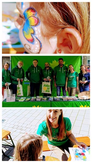 Mit einem Infostand bei bestem Frühlingswetter sind die Zweibrücker GRÜNEN in den Wahlkampf zur Stadtrats- Bezirkstags- und Europawahl 2024 eingestiegen. Neben Information, Grillzangen aus (FSC-zertifiziertem) Holz und Wildblumensamen gab es Kinderschminken als besonderes Angebot.
